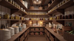 Organizarea cămării în stil vechi îmbină ordinea, căldura și eficiența, transformând spațiul într-un colț plin de farmec rustic. Cu rafturi din lemn masiv, borcane etichetate și coșuri din răchită, produsele sunt accesibile și vizibile. Acest stil atemporal asigură o estetică armonioasă și o funcționalitate optimă, perfectă pentru orice gospodărie.
