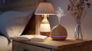 Pe noptiera mea păstrez mereu o carte preferată și un difuzor de aromaterapie, care mă liniștesc după o zi agitată. Lumina caldă a veiozei și parfumul de lavandă îmi creează un mediu relaxant, ajutându-mă să mă deconectez și să mă pregătesc pentru un somn odihnitor.